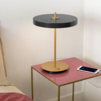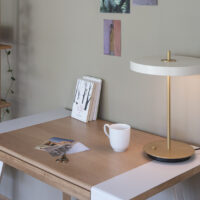 Asteria table has a built-in LED panel with a diffuser ensuring a soft illumination in the room. The brass stem going through the table lamp as a vertical axis reinforces a tight and sleek expression. Asteria table has a hidden USB-port, so you can charge your phone – even when the light is turned off. The lamp is ideal on the desk or as a bedside table lamp but will add elegance to every corner of the home.