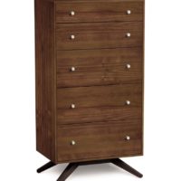Have you been searching for an eye-catching, Mid-Century Modern dresser? We have just the model for you – Meet Astrid. Deeply splayed legs produce dramatic cantilevers that are an engineering feat that defy expectations and inspire a sense of possibility. Built to last, the Astrid bedroom collection is constructed from solid cherry or walnut. Enjoy this showstopper a little sooner by choosing one of the Quick Ship finishes: Natural Cherry or Natural Walnut*. Complete the look with the coordinating Astrid platform bed and nightstands. Need a little more storage? Check out the rest of the Astrid dressers!