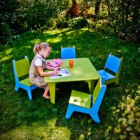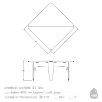 Made from 408 reclaimed milk jugs, the BBO2 Kids Table offers the perfect setting for the little ones to play, eat and more. The BBO2 table is made of 100% recycled post consumer high density polyethylene. This line of furniture can be used outside in all climates or inside of the home. Buy two and switch the tops for a fun multi-color look. Pair with the BBO2 Kids Chairs for an adorable grouping. The polyethylene material requires no maintenance and can withstand all outdoor conditions. Made in Minnesota. Some assembly required.