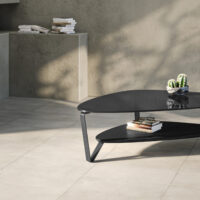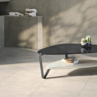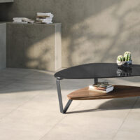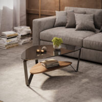 The uniquely shaped Dino table collection has been updated with brushed carbon legs, grey-tinted glass, and a new finish assortment. The sleek and sophisticated design makes it an excellent choice for sectional sofas and spaces where a rectilinear table isn’t the answer.