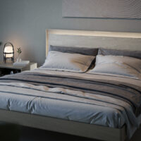 A soft, ambient glow at the headboard enhances any setting. The touch-sensitive brass bar allows for easy on/off control and smooth dimming adjustments.