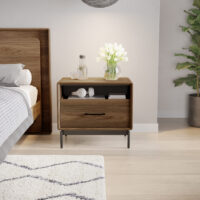 Bringing a whole new function to the bedroom, LINQ nightstands feature sliding tops to provide easier access to the table’s contents from the bed. The 28″ version also includes a pullout storage/charging shelf.