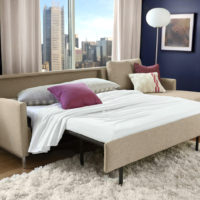 Your guests will never guess that this modern sofa is, in fact, a sofa sleeper. Our Exclusive Bowie Comfort Sleeper has stainless steel legs and thin, stylish arms. It easily transforms into an exceptionally comfortable bed for your guests.