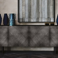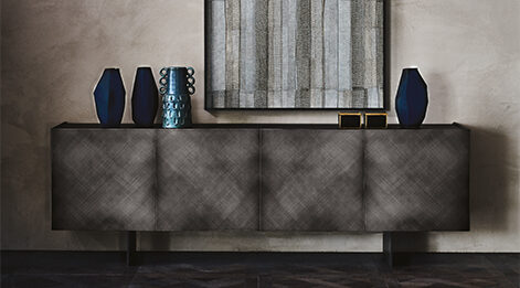 The Arizona design sideboard created by Alessio Bassan is embellished with two types of brushed finishes, handmade by skilled craftsmen. The Arizona model has a fine Brushed finish, which decorates the doors with delicate metallic scratches.