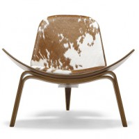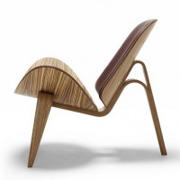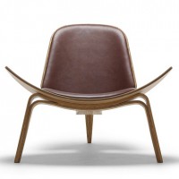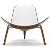 The Shell chair is another unique and classic design by Hans Wegner. Designed in 1963, the Shell Chair is still produced by Carl Hansen & Son today in Denmark. This chair is sometimes called the “smiling chair” due to its upward curving seat that seems to float above the ground. The bentwood frame of the chair uses three legs to create amazing stability and the perfect sitting angle. The lacquered Walnut frame of the Shell chair provides a warm backdrop for a number of fabrics and leathers that can be chosen for the seat and back cushions.
