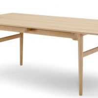 The CH 327 Dining Table was designed by Hans J. Wegner in 1962. It’s a stunning example of Scandinavian Modern design. Choose from solid ash, beech, oak or walnut with optional end leaves in grey or black MDF. Made in Denmark by Carl Hansen & Son.