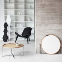 Hans J. Wegner’s CH417 Tray Table combines two simple parts – a reversible round tray and a collapsible stainless steel base – into a smart and easy-to-store solution that is both simple and practical.
