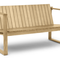 In 1959, Danish architect Bodil Kjær launched her Indoor-Outdoor Series, which included the supremely comfortable BK12 lounge sofa. Crafted from solid teak with a slatted seat and back, the sofa displays the same geometric sensibility that underpins the rest the collection. This quality is further enhanced by the armrests, legs and runners, which are morticed together to form sleek squares. Conceived as an architectural element, with proportions designed accordingly, the BK12 lounge sofa is suitable for indoor and outdoor use. Cushion is sold separately.