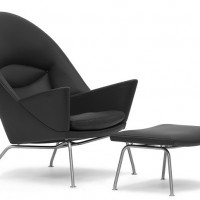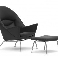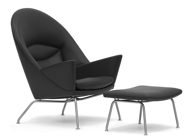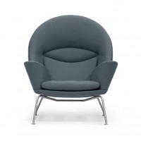 Although this chair was designed in 1960, it was not put into production until 2010. Hans J. Wegner designed more than 400 chairs during his amazing career and we are now able to enjoy one of those chairs for the first time. The Oculus lounge chair is large enough to lounge in a variety of positions. The unique back provides support for the entire length of your back. Substantial arms make this a great reading chair. Stainless steel legs give the CH 468 a lightness. The comfortable seat cushion is a blend of down and foam to provide softness while maintaining its shape. Pairs well with the CH 446 Ottoman. Made in Denmark.