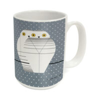 The mug is based on the artwork of Charley Harper’s Twowls. Charley Harper (1922 – 2007) was a renowned American illustrator, best known for featuring elements of nature in his artwork. He called his unique style of painting minimal realism.