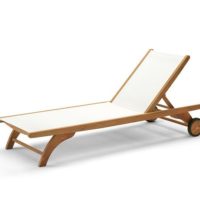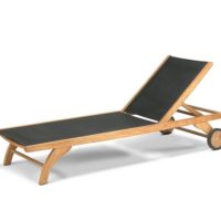 A super comfortable and versatile sun lounger made from 100% FSC teak and hardwearing fabric in either black or white. With its two wheels, the Columbus sun lounger is easy to move around and the backrest is adjustable in several positions.