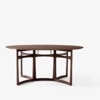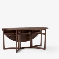 The Drop Leaf dining table was designed in 1956 by Hvidt & Mølgaard. They aimed to create a versatile piece that would be able to adapt to its surroundings. Enter the Drop Leaf Series! An organic wood top and curved wooden frame feel welcoming and timeless. Two drop leaves can be folded down to create smaller table configurations. Choose from white oiled oak or natural oiled walnut.