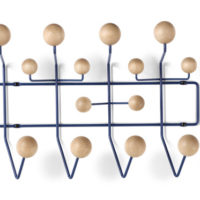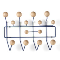 A new spin on the classic Eames® Hang-It-All®! Solid maple wood hooks are complimented by a dark blue wire frame. This fresh color combination brings a new dimension to this famous piece designed in the 1950’s. This clever wall hook mounts directly to the wall to provide hanging space for purses, coats, umbrellas and more. Smooth, spherical hooks won’t damage sweaters and other delicate items. Also available in walnut wood with black or white frame and solid black, solid white or multi-color.