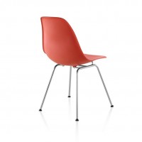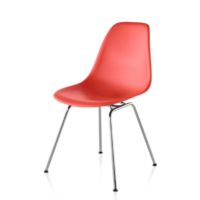 This chair model features the side chair seat option and the four leg base, which creates a simple and elegant look. Customize this chair by choosing from a variety of plastic and metal finishes. Plastic seats are made of recyclable polypropylene. Eames Molded Plastic Chairs are 100% recyclable at the end of their usable life.