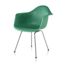 This model features the arm chair seat option with the simple 4-leg base. Also available without arms. Choose from a variety of modern and fresh seat colors. Plastic seats are made of recyclable polypropylene. Eames Molded Plastic Chairs are 100% recyclable at the end of their usable life.