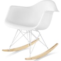 The model shown above features the armchair seat option with the rocking base, which will add a little fun to any space. Customize the look by choosing from a variety of plastic, metal and wood finishes. Plastic seats are made of recyclable polypropylene.