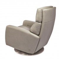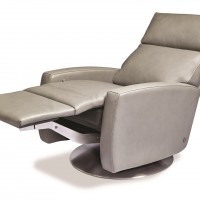 Choose from a natural walnut wood, grey stained ash wood or stainless steel swivel base. Also available with wood legs. The Elliot features a pillow back design. For a tightback design, please see the the Eva Comfort Recliner. Comfort recliners are made using premium high density, high resiliency foam seats. Choose from a huge selection of high quality leathers and durable fabrics. Made in Texas using BiOH foam, which is a high density foam with part soy content.