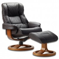 The Fjords 855 Loen Recliner and Ottoman provide a supportive and comfortable experience. The relaxed look of the Loen Recliner will fit beautifully into traditional and contemporary interiors. This ergonomic Norwegian design separates the footrest from the recliner to increase adjustability. This design allows the user to position the footrest in a way that supports the legs properly and increases back support. The chair reclines effortlessly by gently pushing your body weight backwards. A tension knob allows you to adjust the tension of the recline. The headrest adjusts manually by pulling the top of the chair forward or backward. High quality leather enhances the comfort of the chair and creates a beautiful, long-lasting recliner. Choose from a variety of leathers.