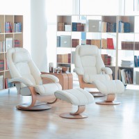 Enjoy true luxury and comfort with the Admiral Recliner & Ottoman by Fjords of Norway. This Scandinavian recliner has a cold-cured molded foam interior that will hug your body and remain resilient over many years of use. The unique design of the C Frame made of European beech wood creates a slight bounce. Simply put your feet up, push back and relax. High quality leather enhances the comfort of this modern reclining chair and creates a beautiful, long-lasting recliner. Choose from a variety of leathers to fit your decor and lifestyle.