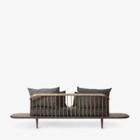 The Fly series, designed by Space Copenhagen, features sculptural design and maximum comfort. A spindle back and wood frame call to classic Nordic aesthetic that favors organic shapes and solid craftsmanship. An attached table on either end of the sofa provides a place to rest your beverage of choice. Ample seat cushions teams up with a bounty of loose back cushions to create a super comfy and versatile sofa. It’s the perfect spot to cozy up with a good movie or book. The Fly sofa is perfect for modern and traditional living rooms alike!