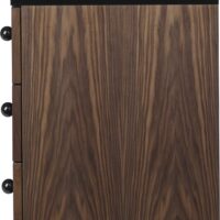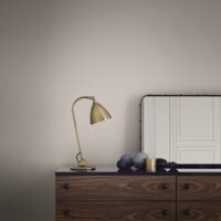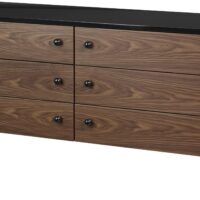 Designed in 1952 by Greta M. Grossman, but named the 62 Sideboard as it was deemed to be ten years ahead of its time. The sideboard illustrates the designer’s penchant for exceptional shapes and unusual pairing of materials. The slender metal legs with ball-shaped feet, a characteristic trait of Grossman, contrasts the sharp rectangular shape in luxurious American walnut, giving the furniture a characteristic appearance of lightness and almost seeming to defy gravity. Adding to its elegance, the sideboard is provided with a deep, black full gloss finish on the tabletop and small solid wooden spheres.