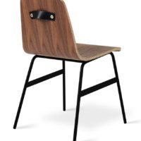 Grab a Gus Lecture Chair using the handy leather strap and take a seat! This simple, modern dining chair has plenty of subtle style. A leather strap is attached to the back of the chair using brass hardware. The black, powder-coated frame is bench-made from solid, round steel and contrasts perfectly with a bent wood seat. Black Metal flat bars add extra stability and an interesting design detail to the chair base. Choose from natural ash, black ash and walnut for the wood seat.