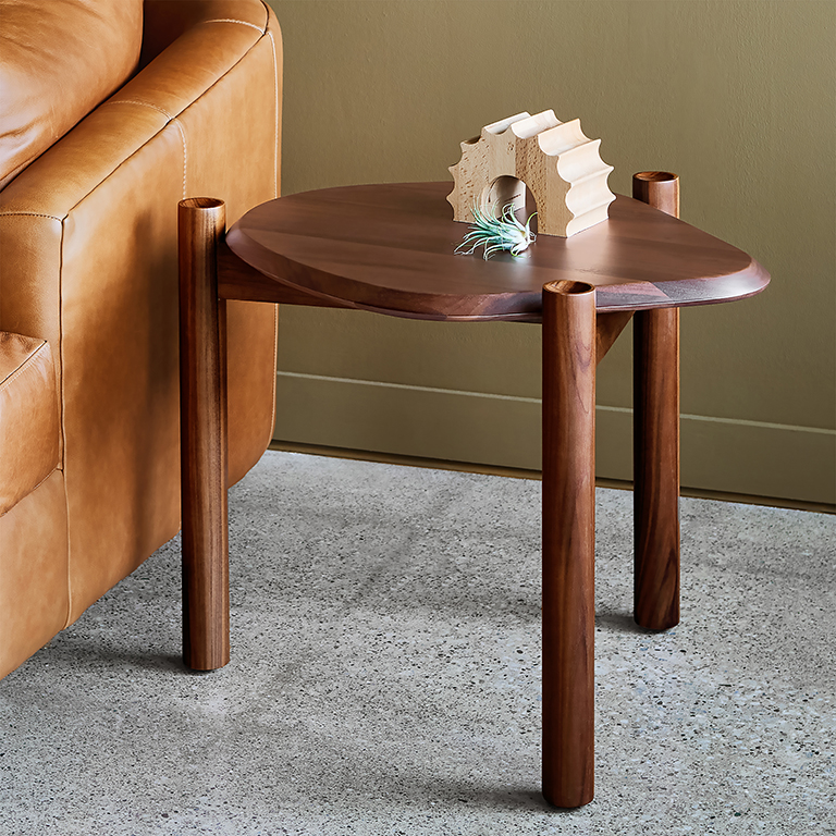 The Monarch End Table juxtaposes organic shapes and natural wood grain with precision craftsmanship and sculptural details. The asymmetrical design provides an aesthetic counterpoint that blends harmoniously with modern living rooms. This table may be nested with the Monarch Coffee Table to create a dynamic arrangement of accents. All components are solid wood and FSC ®-Certified to come from responsibly managed forests as part of our efforts to support a healthy environment.