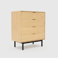 We envisioned our new Munro Collection for those who like to keep things simple. Considered proportions along with bespoke details like soft‐close drawers and recessed pulls lend to designs that shine – day or night. The Munro 4‐Drawer Dresser features plenty of storage space to keep your garments neatly tucked away, creating an organized, uncluttered bedroom retreat. Choose from Walnut or Oak, each with a Zero‐VOC, hand‐rubbed matte finish, thoughtfully chosen to highlight the unique, organic beauty of the wood grain. Solid wood edge details and solid steel legs mean that these designs are built to last – a good thing because Munro’s classic, minimalist ethos will never go out of style.