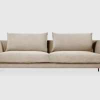 The Renfrew Series is an assortment of semi‐modular seating components that can be arranged to create sofas, sectionals, or custom seating configurations in a variety of sizes and styles to suit any space. In the tradition of European modernism, Renfrew has ultra‐clean lines, a deep, low‐profile stance and delicate legs which give it a light, floating appearance. Loose back cushions lend variety to the silhouette and can be positioned individually to achieve the perfect lounging position. A durable, hardwood frame is crafted with FSC®‐Certified wood to support responsible forest management. Premium feather fill in both the seat and back make this design the ideal balance of minimalist style and everyday comfort.