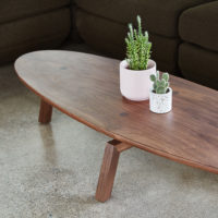Channeling classic mid-century style with the relaxed ambiance of 1970’s Modernism, the Solana Oval Coffee Table showcases solid wood craftsmanship and sculptural beauty. The organic curves of the tabletop rest upon angular legs, creating a pleasing contrast unified by the warmth of the smooth wood grain. Visible joinery details—seamless wedged tenon joints in the top, finger joint detailing in the legs—add subtle interest to this refined accent piece. Part of the Solana Table Series, it is designed to nest with the Solana Triangular Coffee Table or Solana Oval Coffee Table.