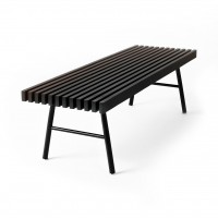 Is it an entry way bench or a coffee table? It’s both! The versatile Transit Bench makes a great place to sit down or a unique coffee table. Use it at the end of a bed, in an entry way or in the living room. Move it around the house to suit your needs throughout the day. Solid ash wood slats run parallel creating a linear effect. Tubular steel legs are splayed slightly to create a solid, sturdy base for this bench.