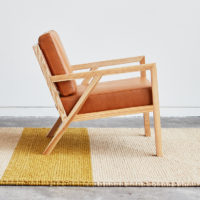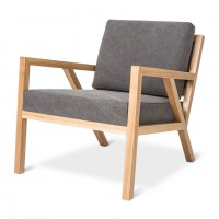This mid-century styled chair features a solid, natural ash frame that creates a unique architectural effect. The interlocking truss base and finger joint detailing on the arms give this chair a unique look. The ideal accent chair for your living room or pair two together for a comfortable and chic seating group. Available in a variety of durable fabrics.