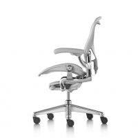 Remastered and reintroduced in 2016, the Herman Miller Aeron Chair offers more support and functionality than ever before. The new version of the Aeron Chair features more user friendly adjustments, new color options and redesigned support for your entire body. The mineral version of the Aeron Chair has a light grey frame and base with a matching 8Z Pellicle™ fabric seat and back. A polished aluminum base and chassis (part of frame that supports arms and seat) are also available.