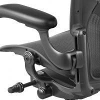 Height adjustable arms move up and down by releasing the lever at the back of the arm, sliding the arm into your desired position and using the lever to lock the arm into place. The redesigned Aeron Chair arm has an improved mechanism that makes adjusting the height of the arms smooth and effortless.