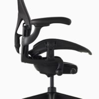 Height adjustable arms move up and down by releasing the lever at the back of the arm, sliding the arm into your desired position and using the lever to lock the arm into place. The redesigned Aeron Chair arm has an improved mechanism that makes adjusting the height of the arms smooth and effortless.