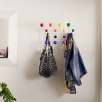 Designed by Charles & Ray Eames in 1953, the Hang-It-All is a colorful and inventive take on the traditional coat rack. Solid maple spheres painted with bright colors, black, or white finish are the perfect knobs to hold jackets, scarves, hats and more.