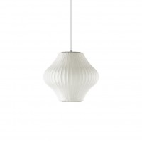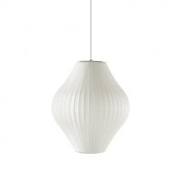 This classic lamp is part of the Bubble Lamp Collection by George Nelson, which was originally designed in 1952. This lovely pear-shaped lamp will create a warm, glowing light in your space. Choose from four sizes. This classic, yet modern pendant comes with a 6 foot white cord and a brushed nickel-plated steel ceiling plate that is 5.25″ in diameter. A white shade creates a soft, even glowing light. The George Nelson Bubble Lamps are available in a number of additional shapes.