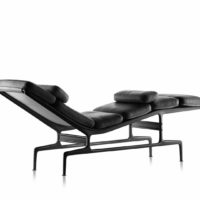 Designed for taking the ideal short snooze, the Eames® Chaise is designed to perfectly support the body in a relaxed, reclined position. This classic mid-century piece has 2.5″ thick foam cushions that contour to the body. The cushions are joined by flexible zippers and secured to nylon fabric slung tightly on the frame. Choose from white, eggplant or graphite satin finishes on a stable die-cast aluminum frame and base. A scratch-resistant, eggplant-colored nylon coating applied electrostatically to the aluminum resists scratching. Choose from several beautiful leathers.