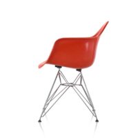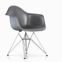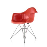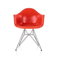 The Eames Molded Fiberglass Armchair with Wire Base is available in a side chair version and with new metal finishes for the base. Looking for something other than fiberglass? Also check out this chair with a Molded Plastic seat!