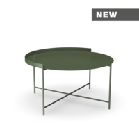 EDGE tray table is suitable for both indoor and outdoor use. The half ring shaped handle makes it easy to move the table between the living room and the garden, and when laid down it functions as a table edge making sure everything stays in place.