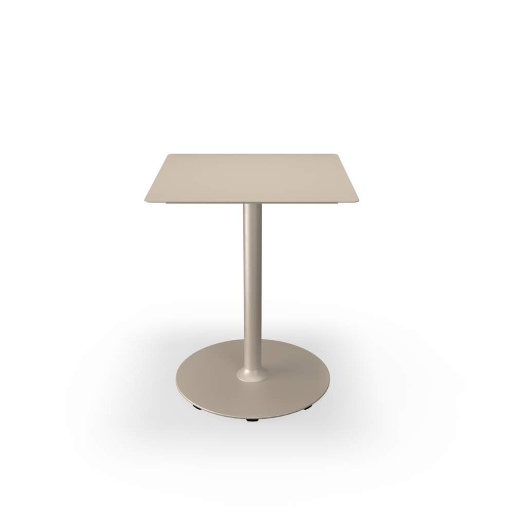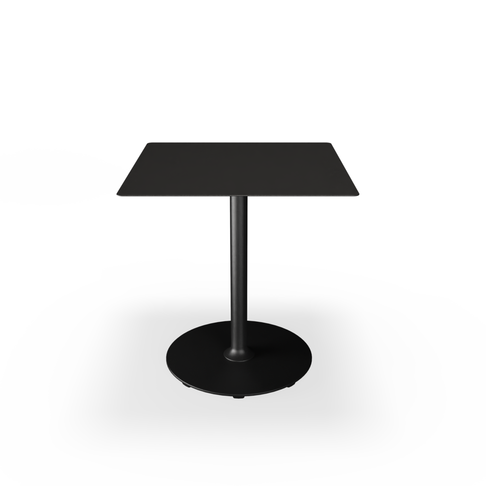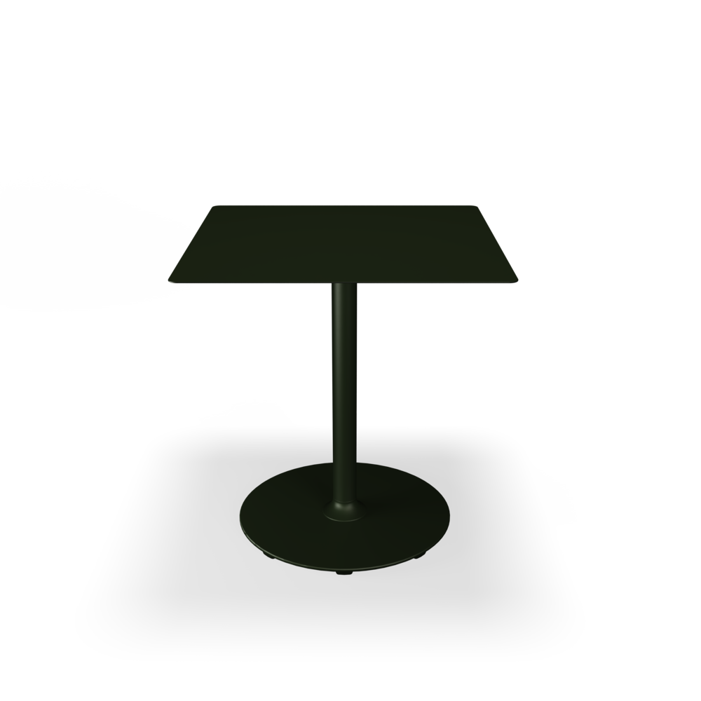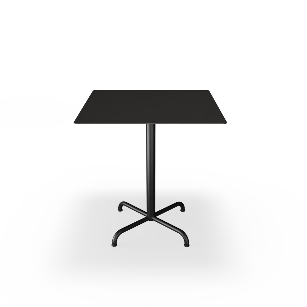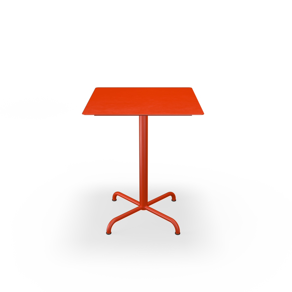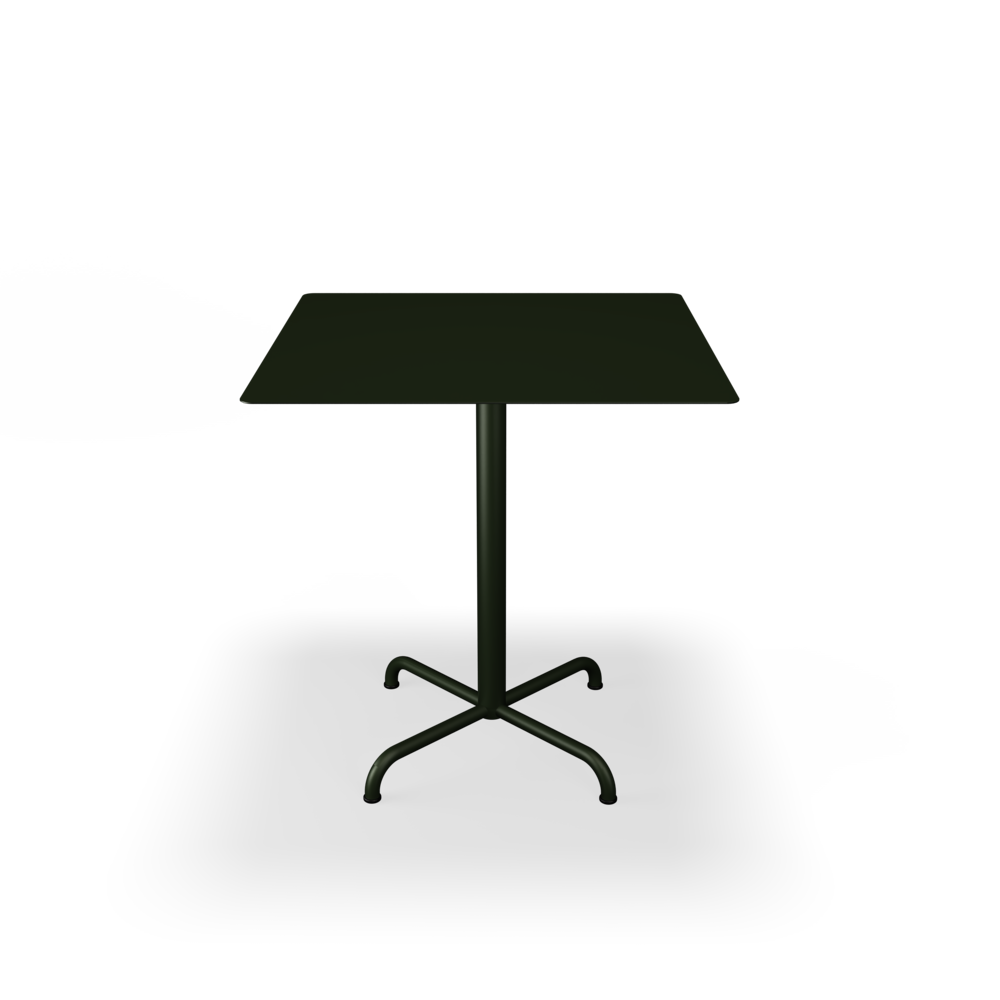The tabletops are made from resilient aluminum, complemented by steel bases with a soft matte surface achieved through powder coating.