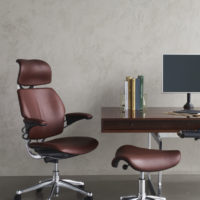 The Freedom Headrest Chair by Humanscale offers ergonomics and intuitive adjustments that will make spending hours at your desk far more enjoyable, featuring a full body ergonomic design with minimal and simple adjustments. The chair’s tension automatically adjusts based on your body weight and moves freely, preventing you from being stuck in one position throughout the day. A height adjustable headrest moves automatically when you recline, providing head and neck support in all positions.