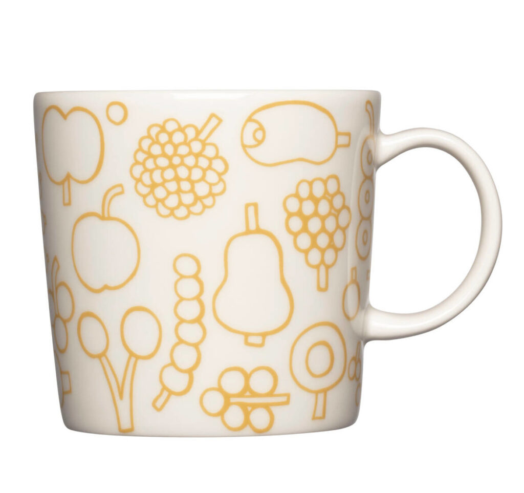 The Iittala Frutta Mug is decorated with Oiva Toikka’s fruit design of apples, grapes and pears. The mug is based on Iittala’s Teema mug, making it easy to combine with other pieces in the Teema series.