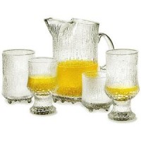 Sip your favorite drink in the Iittala Ultima Thule Old Fashioned glasses. These elegant glassware pieces can be for everyday use, or special occasions. The collection was inspired by the melting ice in Lapland. The design reflects thousands of hours spent perfecting the glass-blowing technique required to produce the effect. The patterns gradually change as the glass burns the surface of the wooden molds. Ultima Thule means “outside the borders of the known world”, and these pieces are definitely out of this world! You will never see anything else quite like these intricately handmade glasses and bowls. Dishwasher safe.