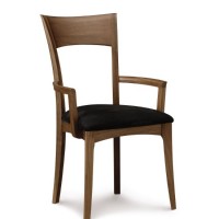The Ingrid has a solid American black Walnut or Cherry hardwood frame with leather upholstery. An open, curved back provides comfort while maintaining an open, airy look. Curved lines soften this collection and create an elegant design. The Ingrid is designed to coordinate with any of Copeland’s dining tables. Also available in Microsuede, or as an arm chair. Several stain finishes available.
