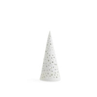 The winter forests of Scandinavia were the inspiration for the Nobili Tealight Candleholders. Candle light streams through the hand-cut holes to add a touch of warmth and coziness to your home. The candleholders stand 7.5″ high and hold a standard tealight candle. From Kahler of Denmark, available in gold or snow white.