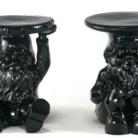 Attila is back again, this time in black and gold! These colors suit their charismatic personalities splendidly. These stool-tables are cute and humorous but still have one eye on functionality. They were thought up to furnish every setting imaginable. The gnome hats, in fact, are flat and circular so that they may be used as a stand or stool.