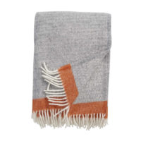The Klippan Hampus Wool Throw is woven in a loose diamond-shaped pattern in grey and white. Bands of color, in a plain weave, accent both ends with thick white fringe. Made from brushed Eco Lambswool, the throw is super soft and warm. Choose from two colors.