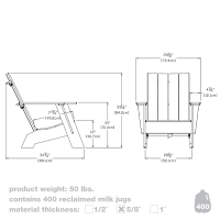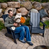 Our Adirondack Chair from Loll is not only comfortable and stylish, it is eco-friendly! Loll products are made out of recycled plastic, such as old milk jugs and margarine tubs. The Adirondack chairs are made out of the equivalent of 400 milk jugs! This material is not only green, it is sturdy and solid and it holds up to the weather all year long, even in Wisconsin.