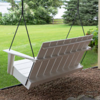 The ubiquitous lounging choice for porches everywhere, the swing. Let your feet hang and feel the motion of the outdoors as you watch the world pass by. The Adirondack Swing, now available in a single or a double in our flagship Adirondack Collection. This chair is maintenance free and made of super durable recycled plastic. It’s super solid and can be left outdoors all year ’round.